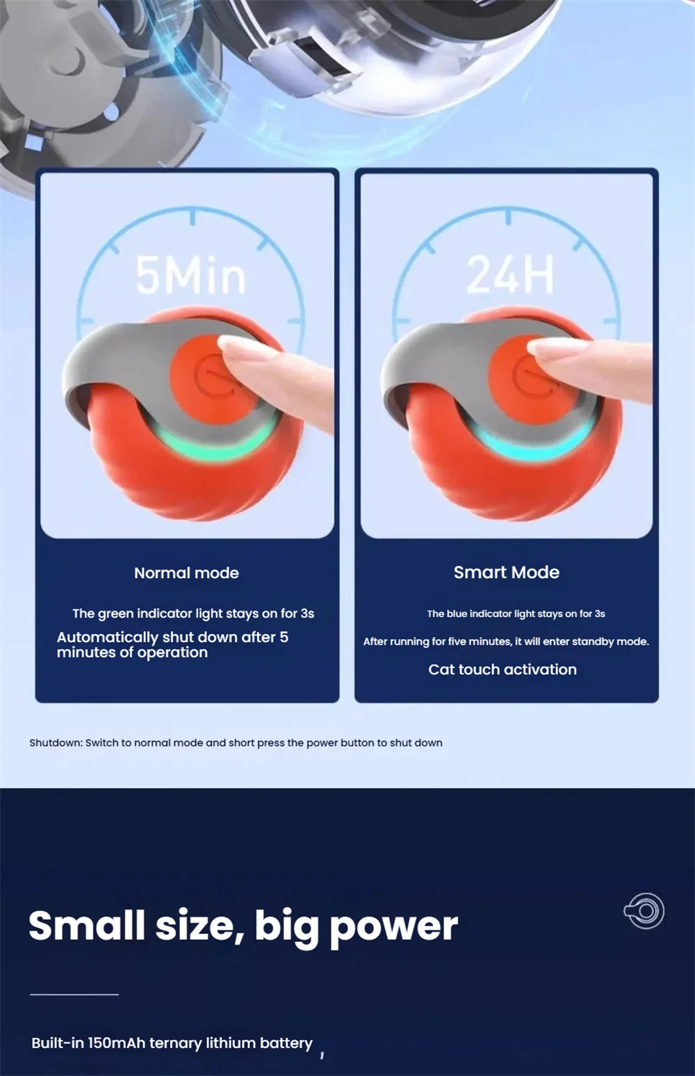 Flexible Rolling Mode: The ball rolls in random directions, mimicking the escape patterns of small prey to stimulate cats' natural chasing instincts.